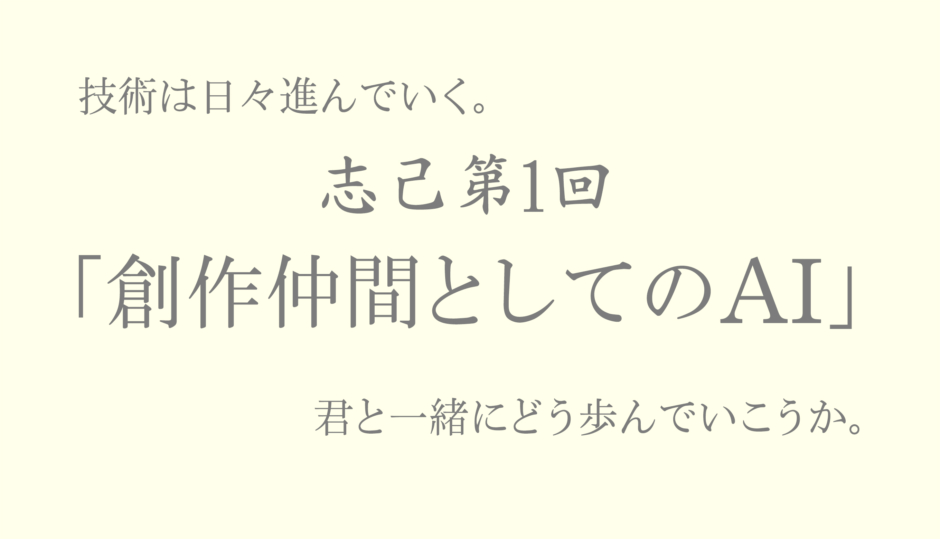 AIとの関わり方について様々な意見や議論がありますが、『志己』は執筆におけるAIの利用を認めています。文章の執筆に限らず、制作活動の一部にAIが関わっていたとしても、核となる心情や経験、感性などは各個人だけのものであり、それらを表現するにあたってAIを利用することは過程の1つだと思うのです。